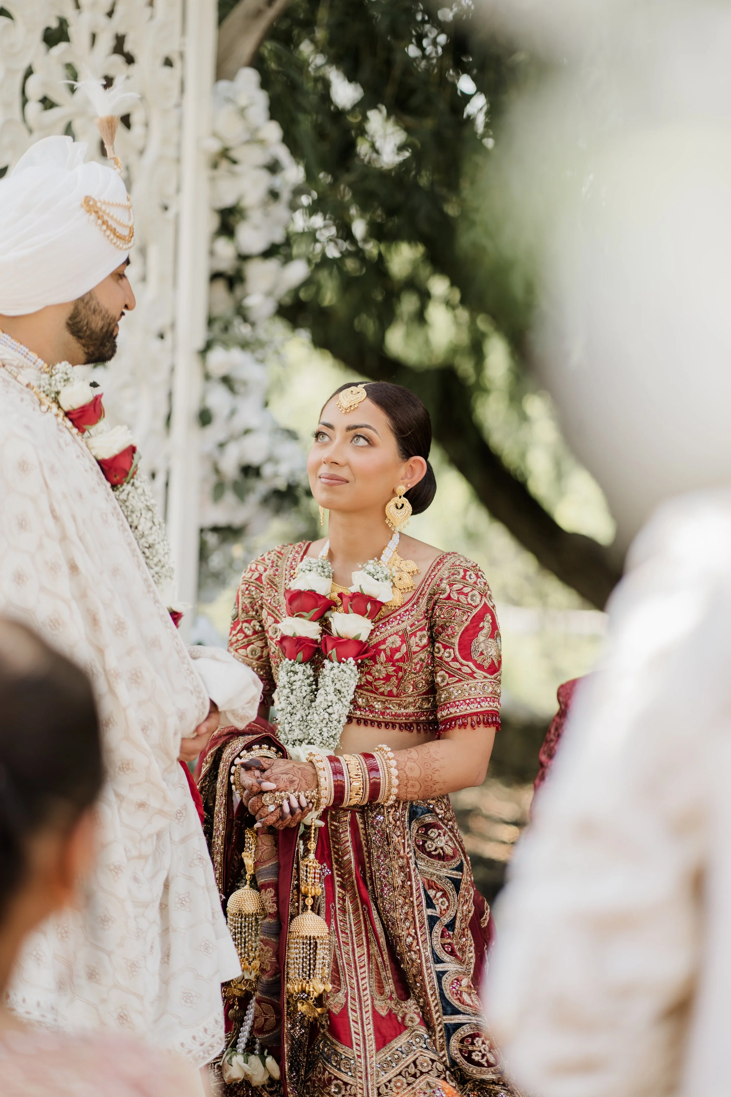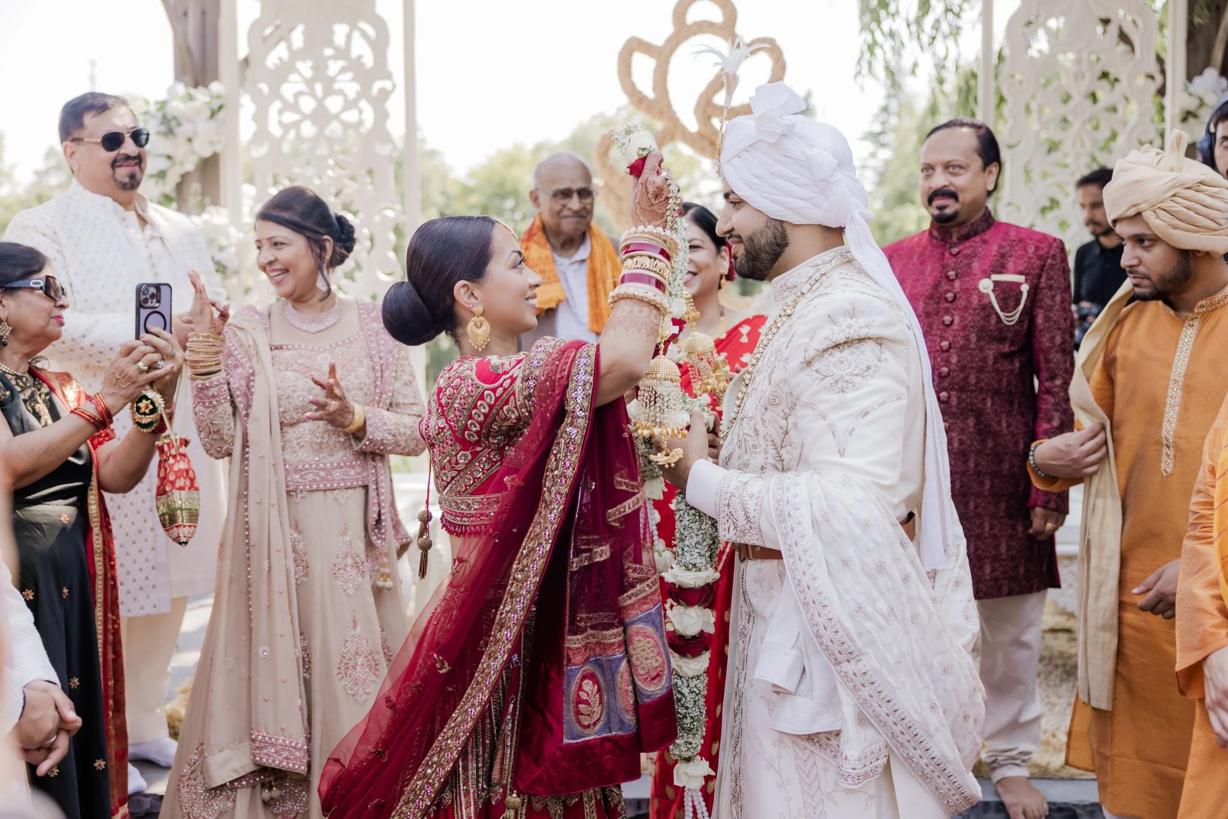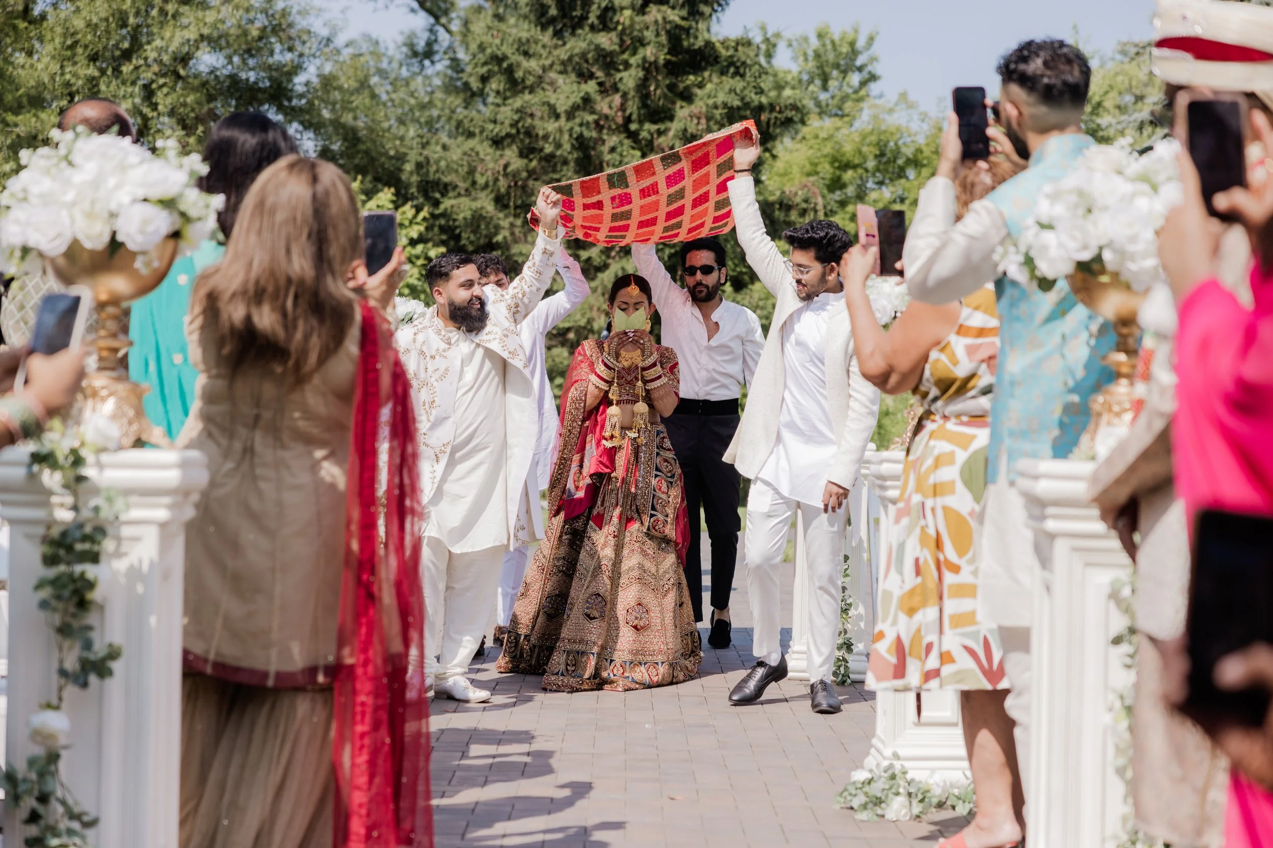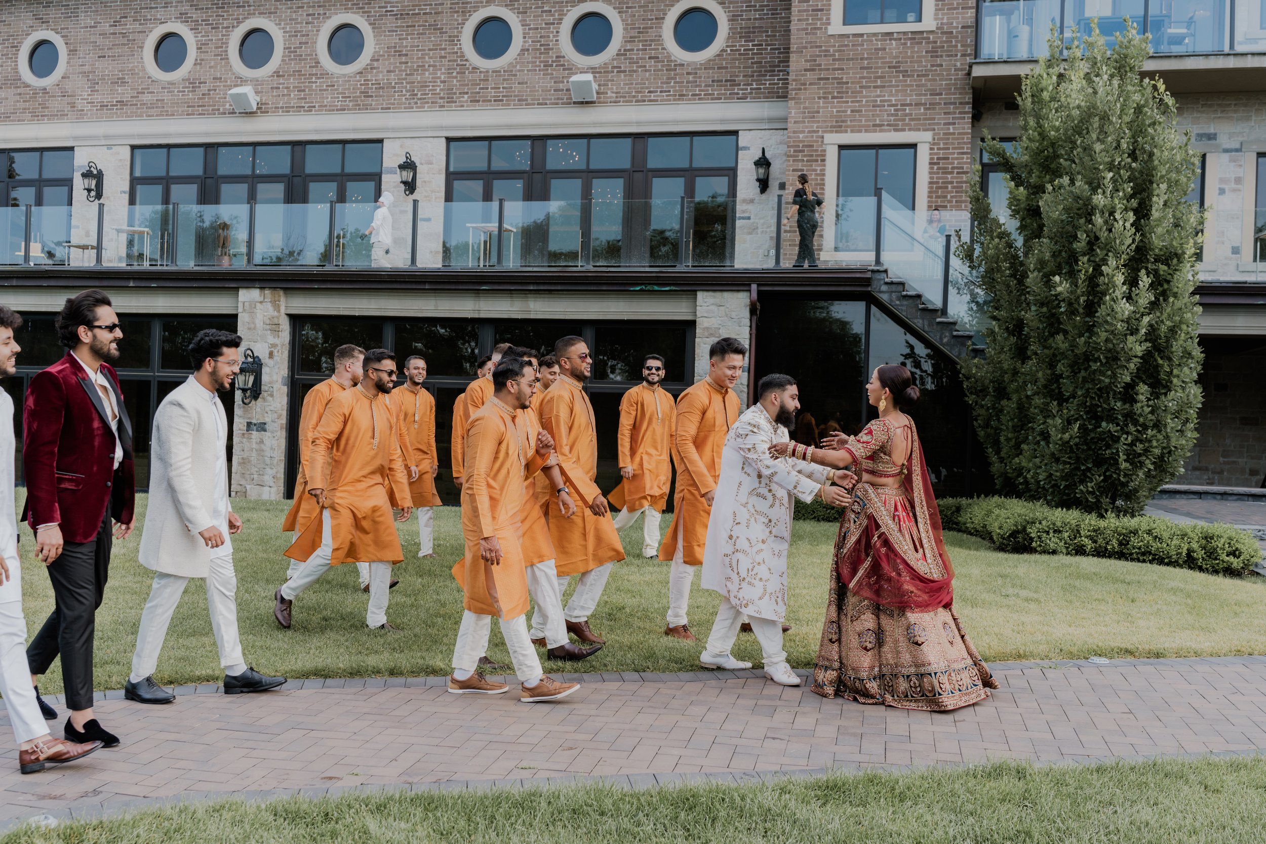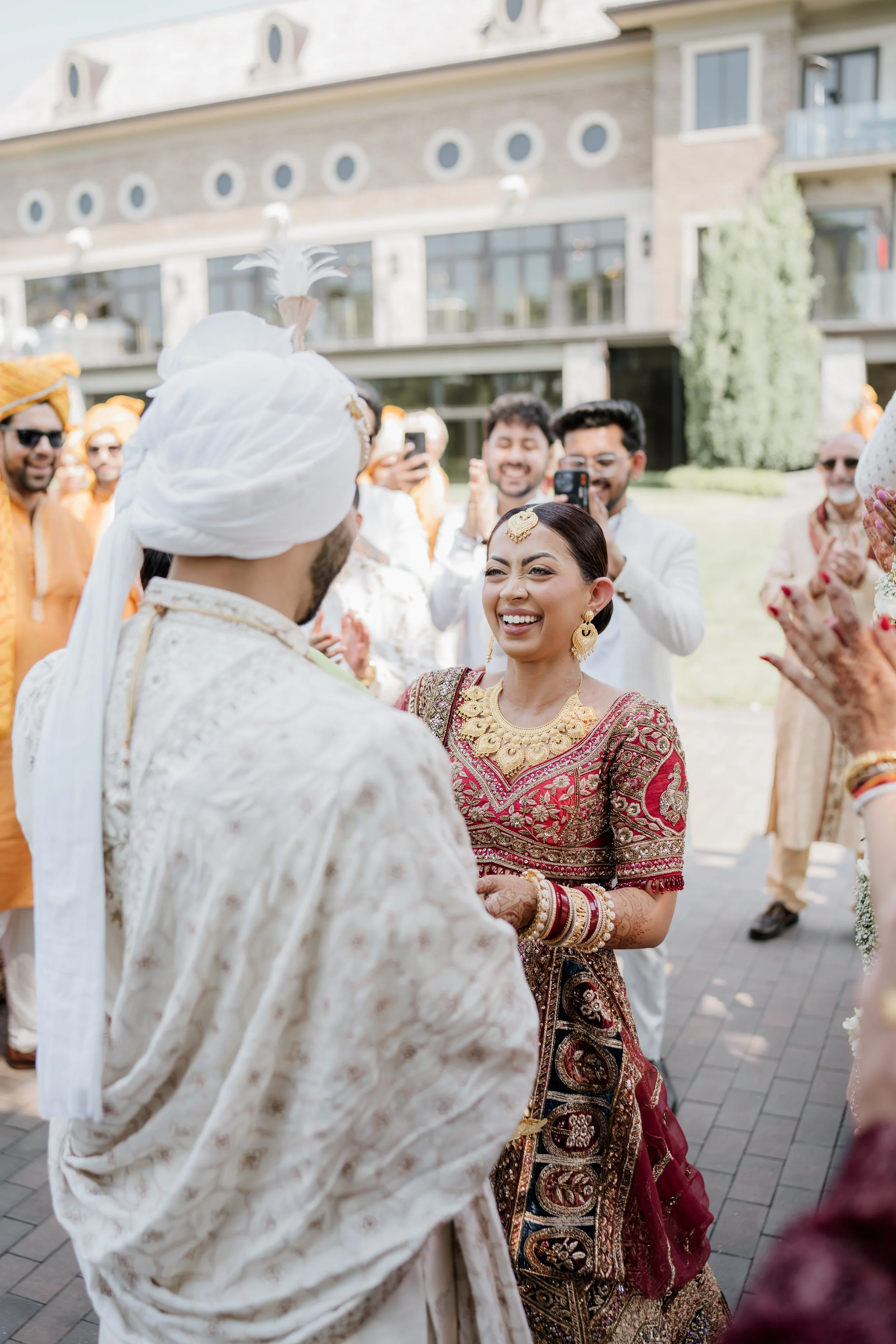 The main wedding ceremony and reception unfolded at the stunning The Arlington Estate, a venue celebrated for its lush outdoor elegance. The ceremony, framed by traditional red and white decor by Dream Party Deco, was followed by an epic Baraat featuring the groom's maximum swagger and smoke bombs. For the reception, the couple transitioned into ultimate glam: Sneha in an ivory-beaded lehenga and Akshay in a midnight tux, all set beneath cascading blush floral arches designed by Cazador Events. Every moment, from the grand entrances to the quiet, romantic spins, was transformed into timeless, cinematic art by True Color Studio, who captured the essence of their deeply personal love story with a signature style focused on emotion and light.