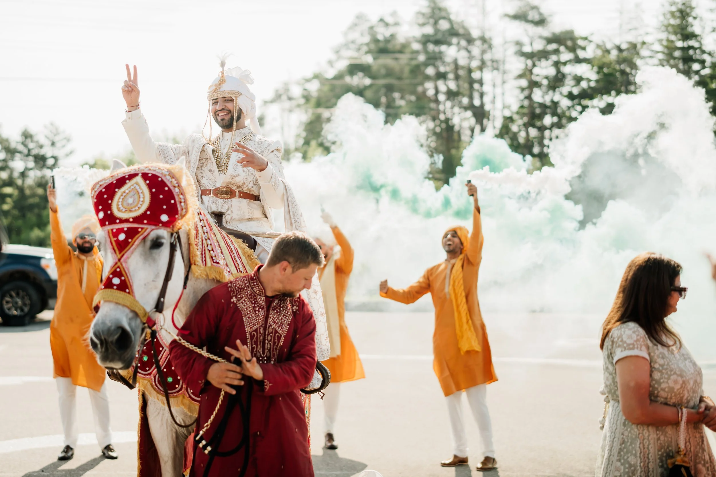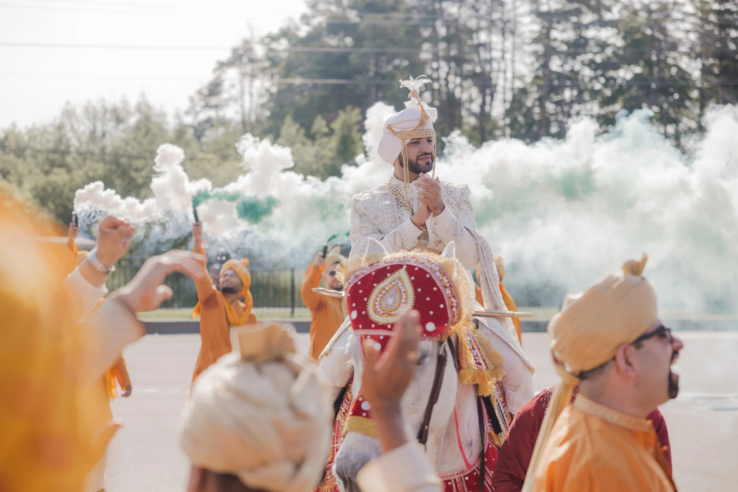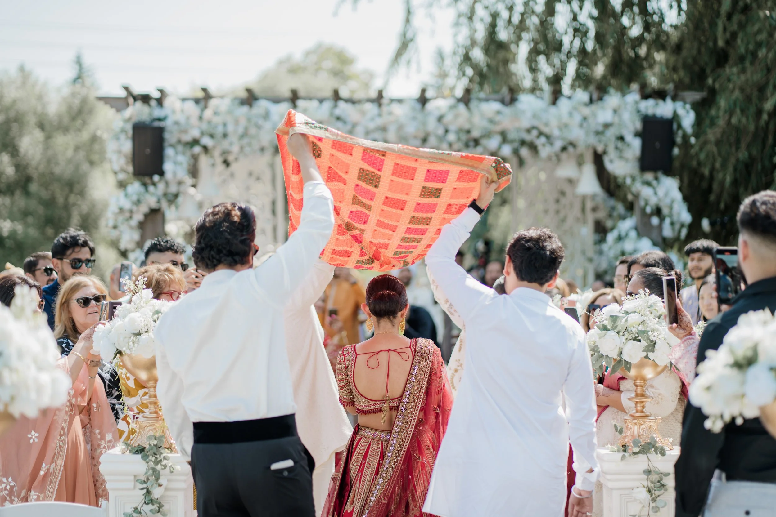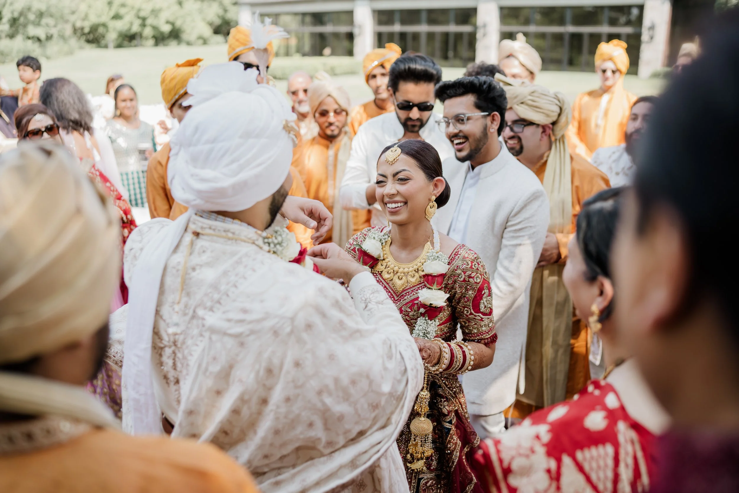 The main wedding ceremony and reception unfolded at the stunning The Arlington Estate, a venue celebrated for its lush outdoor elegance. The ceremony, framed by traditional red and white decor by Dream Party Deco, was followed by an epic Baraat featuring the groom's maximum swagger and smoke bombs. For the reception, the couple transitioned into ultimate glam: Sneha in an ivory-beaded lehenga and Akshay in a midnight tux, all set beneath cascading blush floral arches designed by Cazador Events. Every moment, from the grand entrances to the quiet, romantic spins, was transformed into timeless, cinematic art by True Color Studio, who captured the essence of their deeply personal love story with a signature style focused on emotion and light.