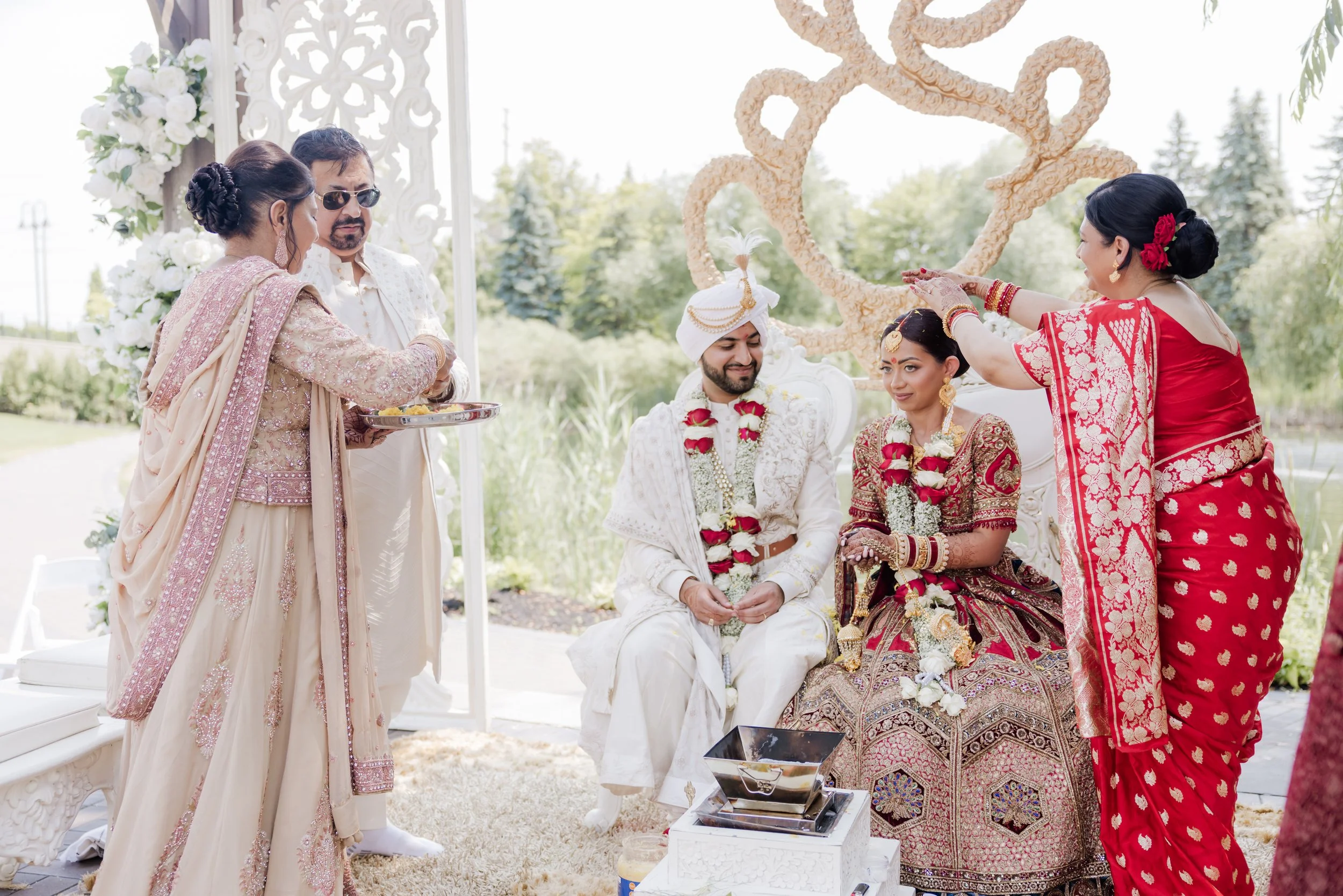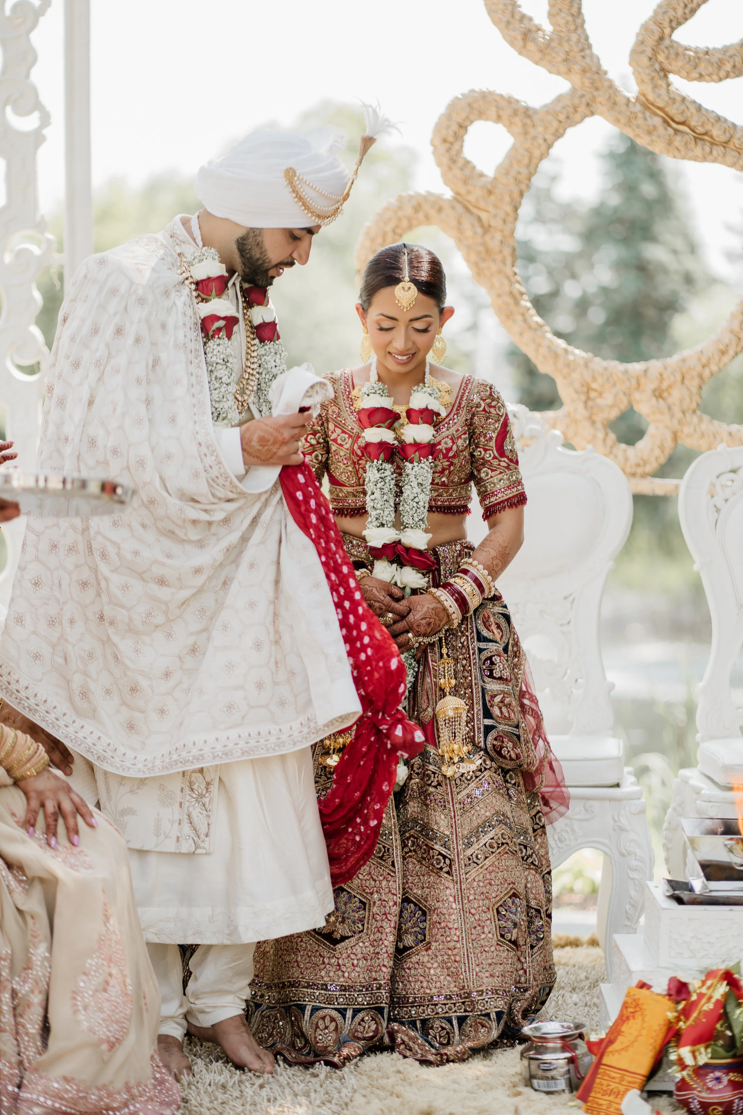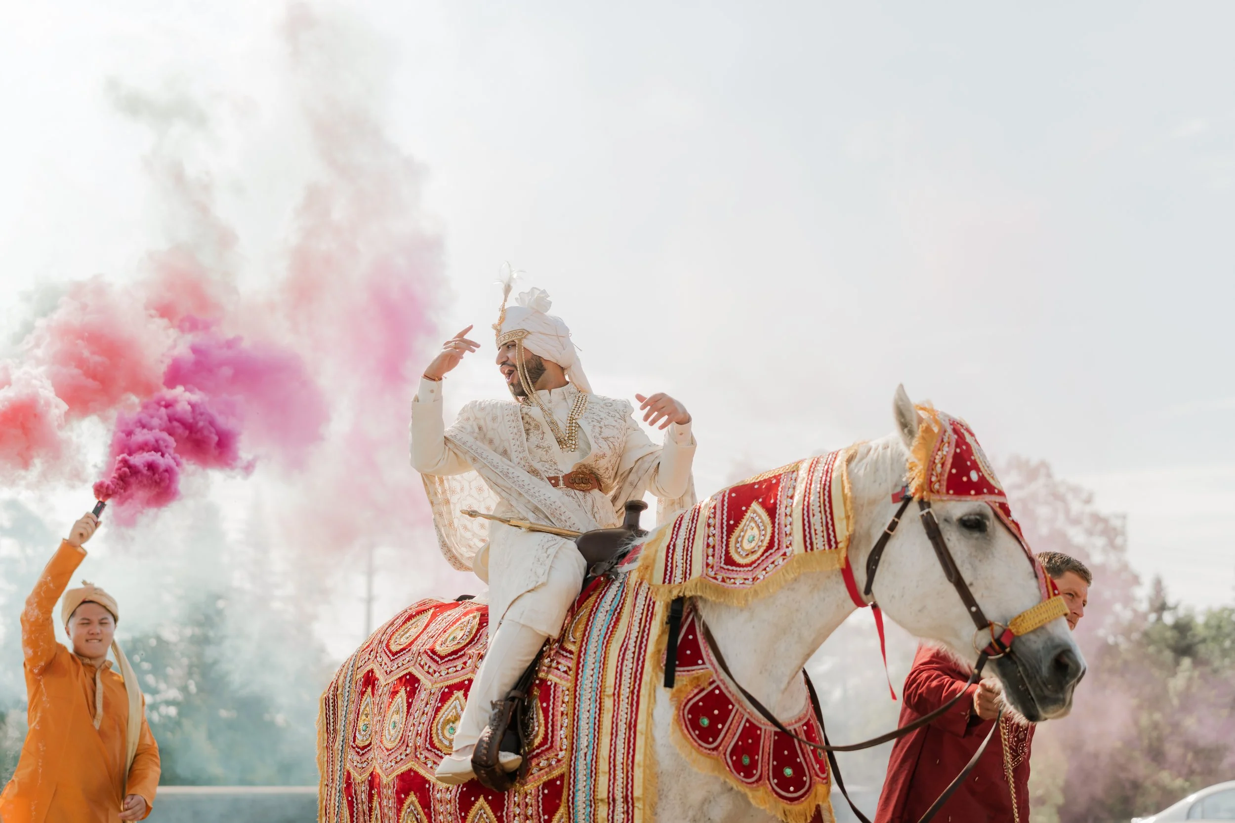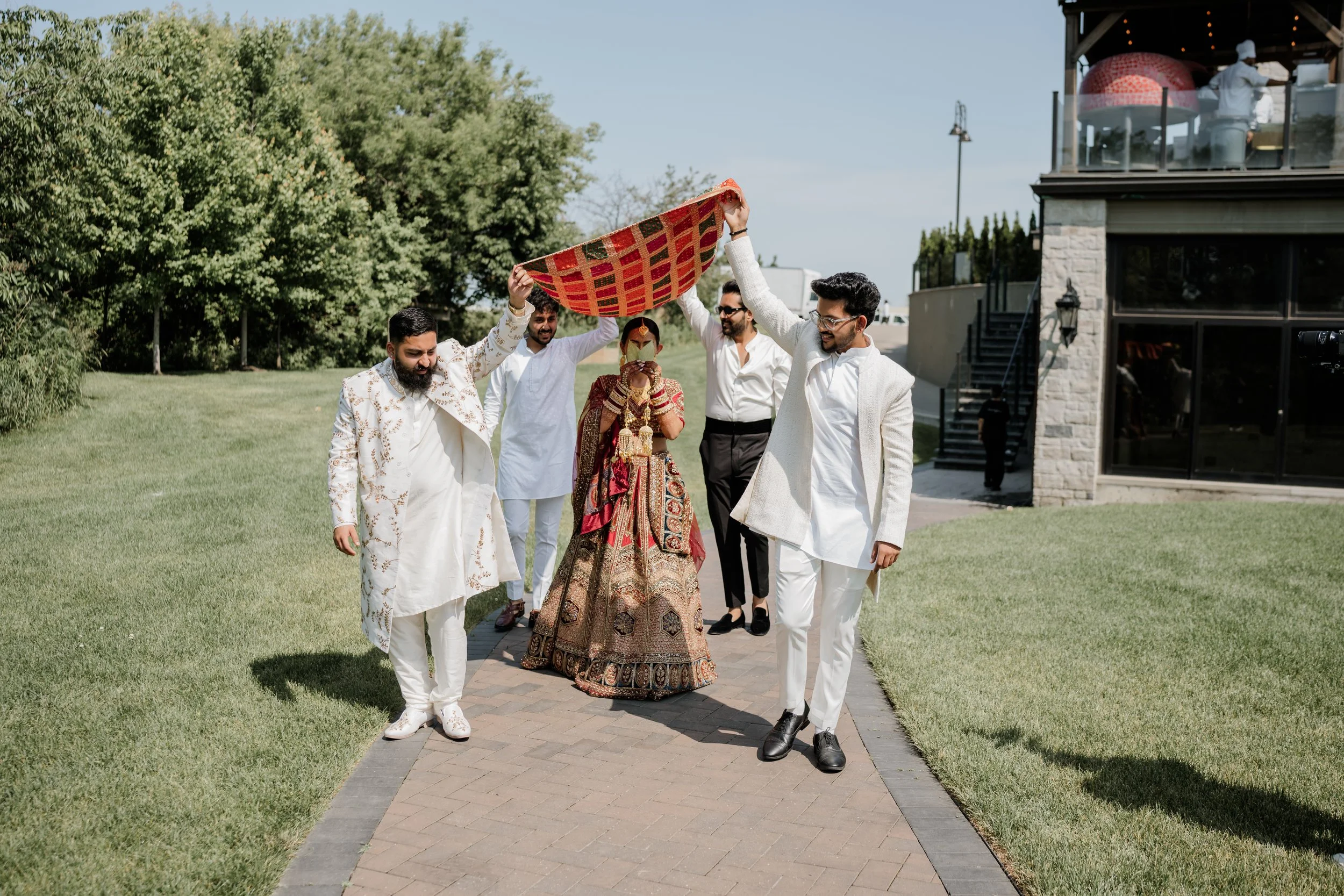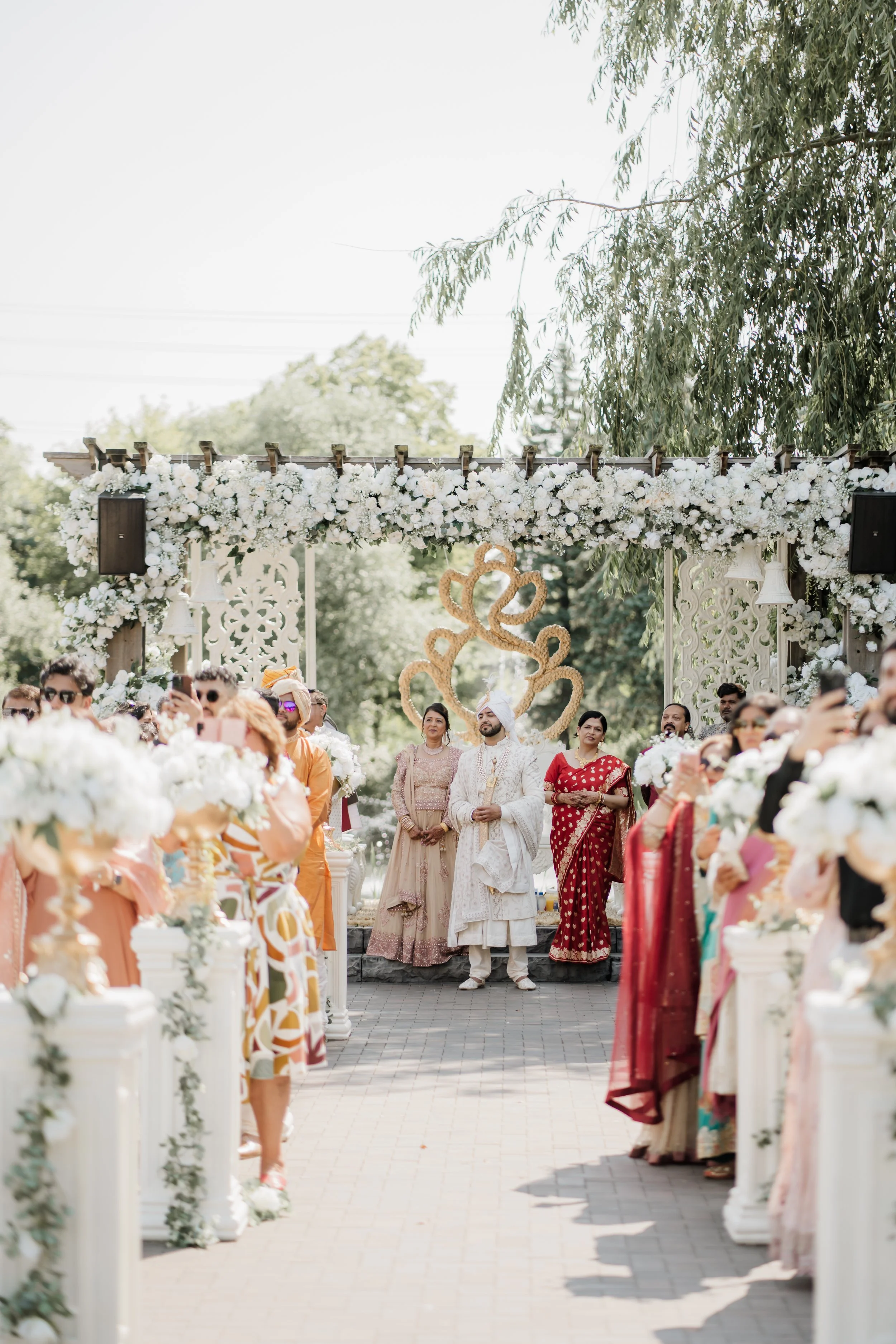 The main wedding ceremony and reception unfolded at the stunning The Arlington Estate, a venue celebrated for its lush outdoor elegance. The ceremony, framed by traditional red and white decor by Dream Party Deco, was followed by an epic Baraat featuring the groom's maximum swagger and smoke bombs. For the reception, the couple transitioned into ultimate glam: Sneha in an ivory-beaded lehenga and Akshay in a midnight tux, all set beneath cascading blush floral arches designed by Cazador Events. Every moment, from the grand entrances to the quiet, romantic spins, was transformed into timeless, cinematic art by True Color Studio, who captured the essence of their deeply personal love story with a signature style focused on emotion and light.