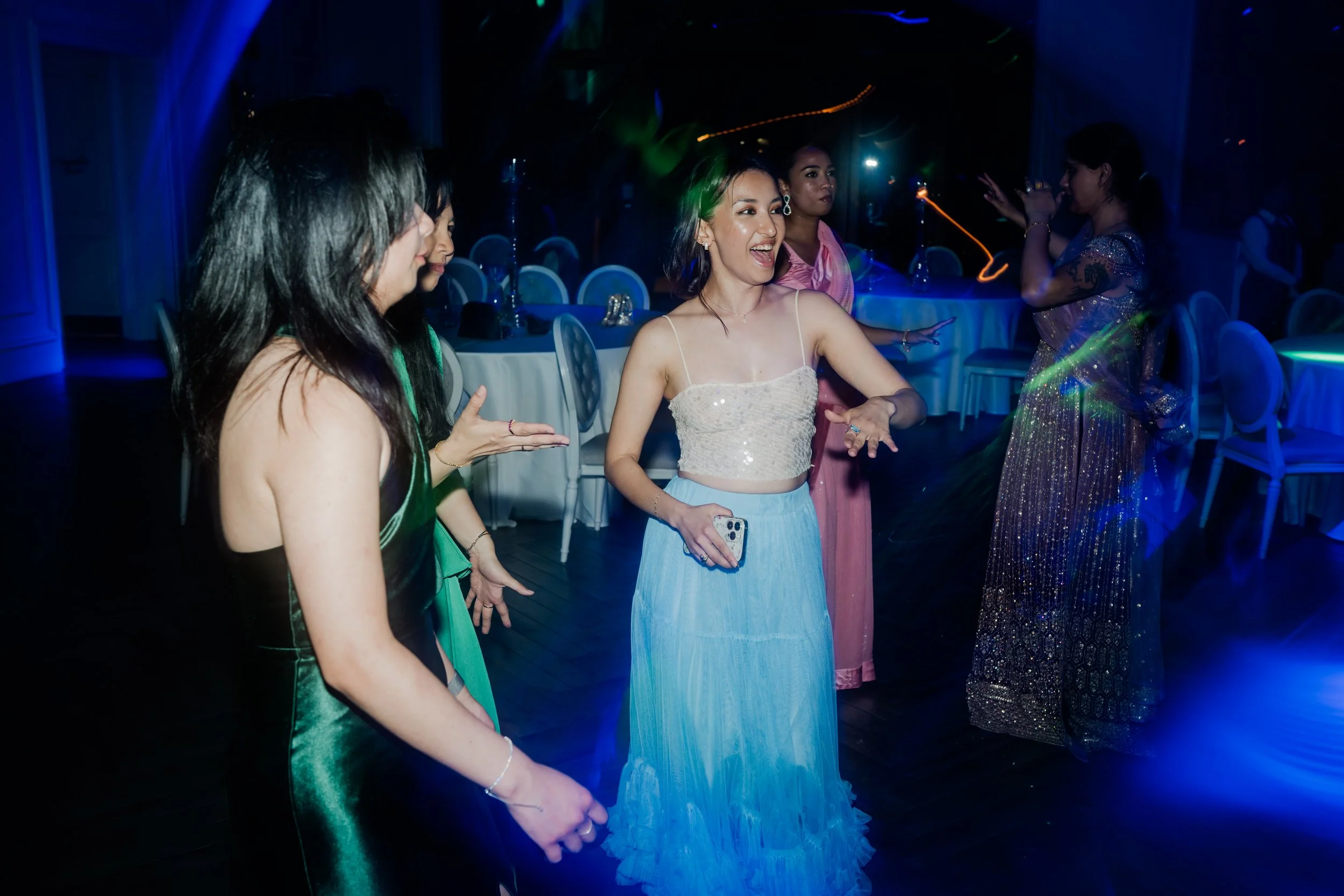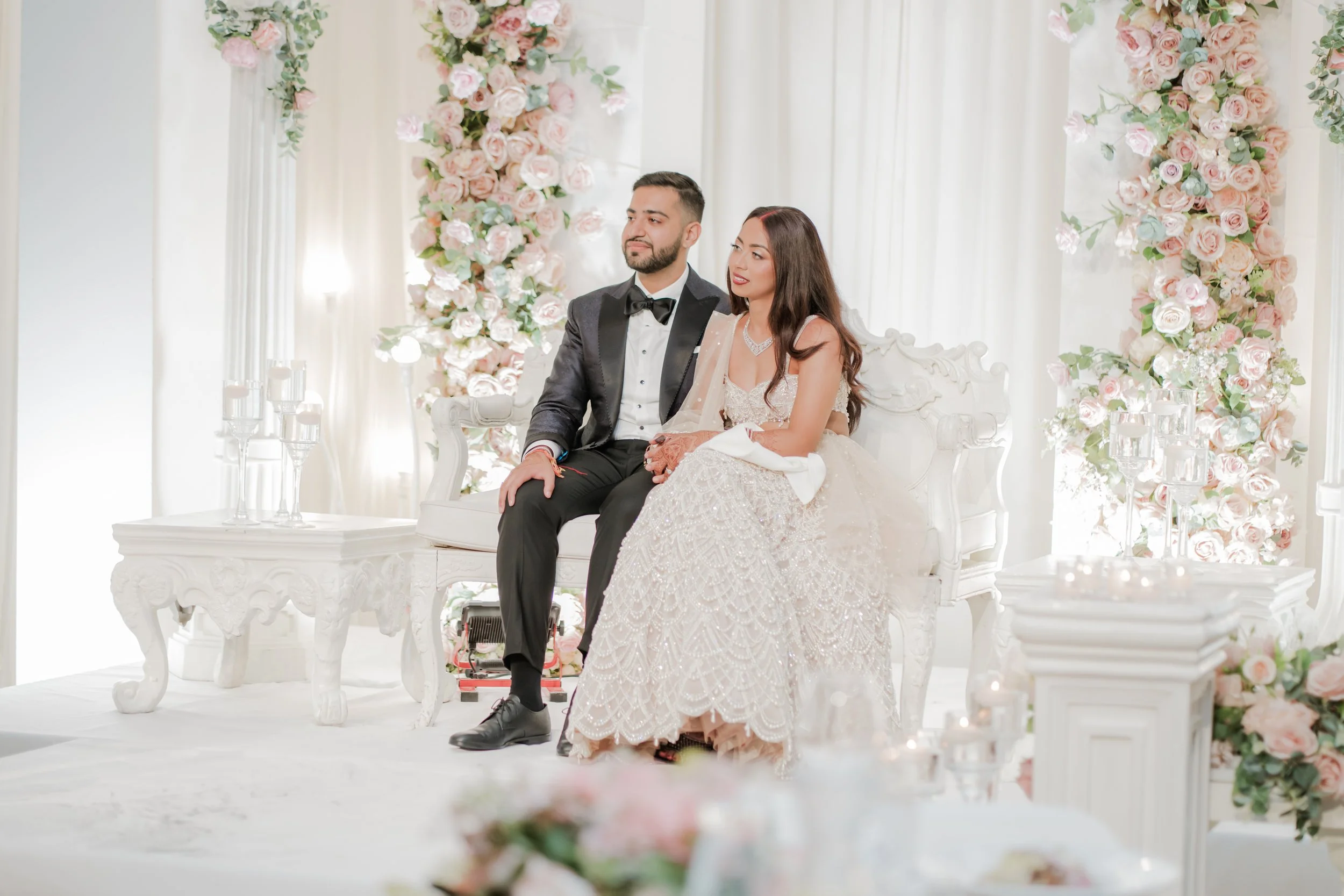 The main wedding ceremony and reception unfolded at the stunning The Arlington Estate, a venue celebrated for its lush outdoor elegance. The ceremony, framed by traditional red and white decor by Dream Party Deco, was followed by an epic Baraat featuring the groom's maximum swagger and smoke bombs. For the reception, the couple transitioned into ultimate glam: Sneha in an ivory-beaded lehenga and Akshay in a midnight tux, all set beneath cascading blush floral arches designed by Cazador Events. Every moment, from the grand entrances to the quiet, romantic spins, was transformed into timeless, cinematic art by True Color Studio, who captured the essence of their deeply personal love story with a signature style focused on emotion and light.